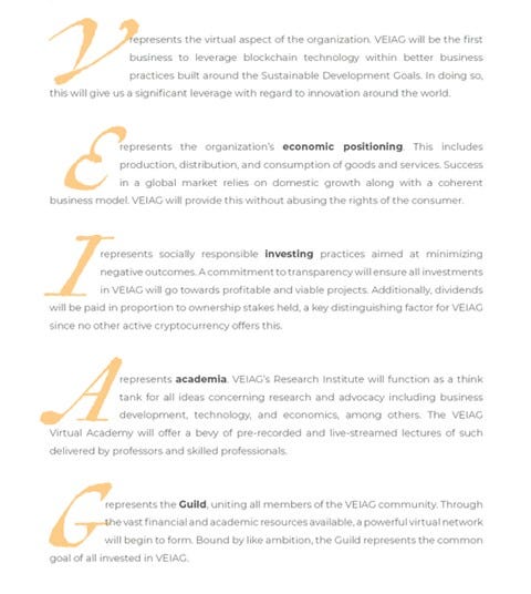 so the word VEIAG is an acronym of Virtual, Economy, Investment, Academia Guild.